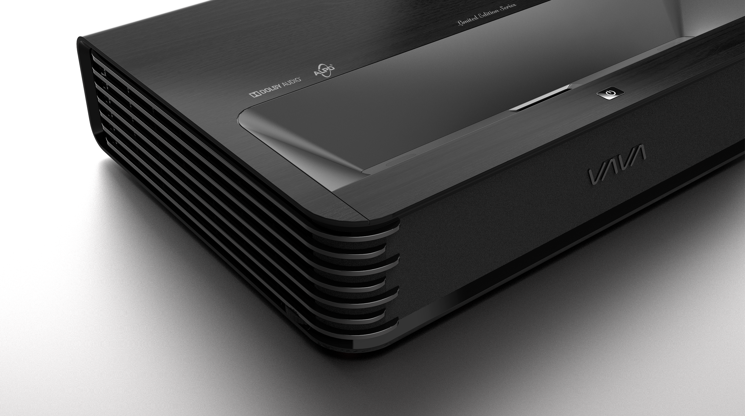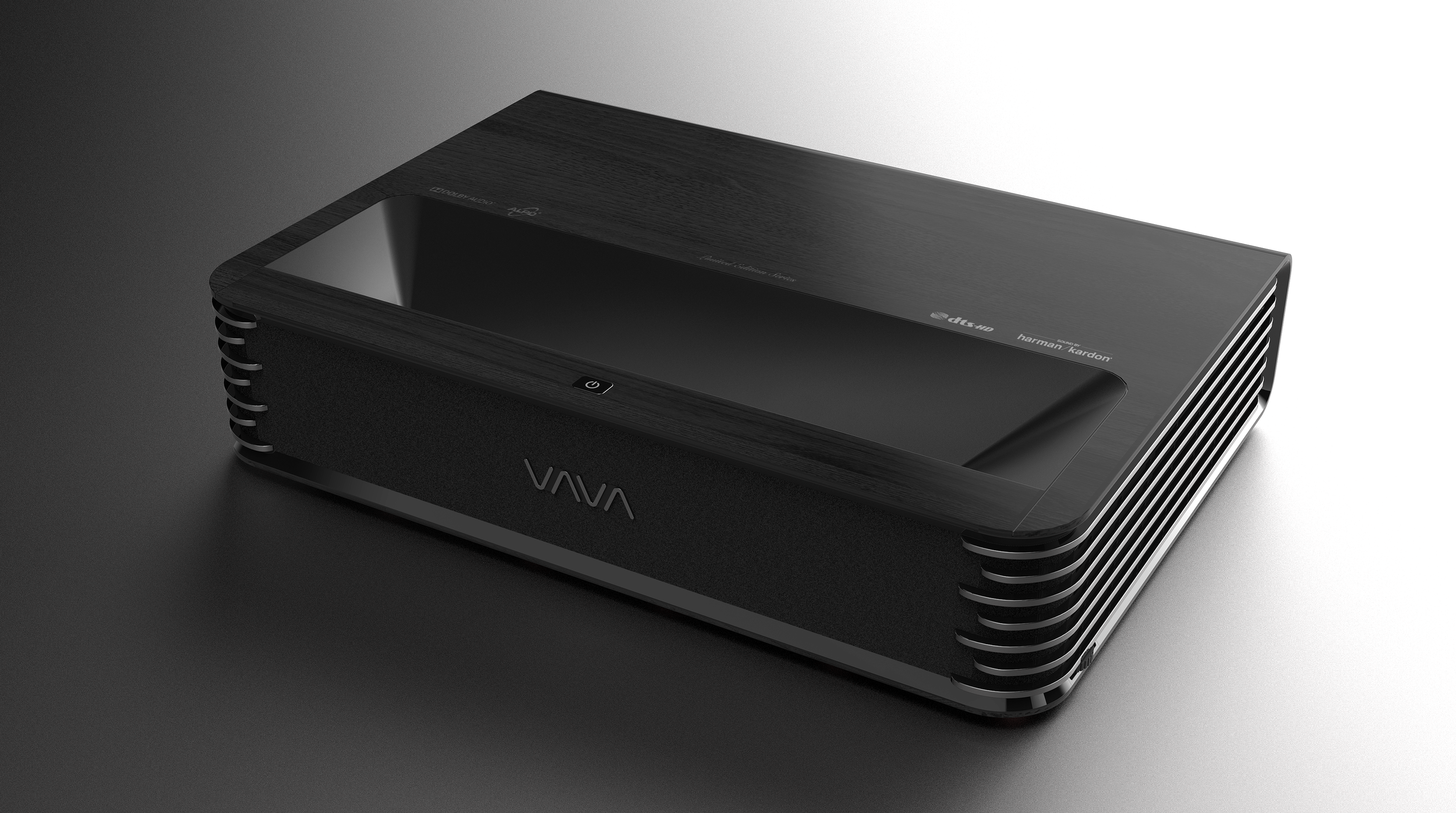 Advanced CMF design study for the VAVA Chroma 4K laser TV short-throw digital projector. Based on the overwhelming success of the Chroma 4K laser tv projector what started out as a design exercise turned into a production reality. The Chroma projector had just been released and sales were at a record high. Quick to take advantage of this momentum Sunvalleytek wanted to follow up with a refreshed look that would have added appeal for the European and N.American market. During a trip to the UK I conducted some research to identify emerging and prevailing trends in the home entertainment market. Noticing that the European sensibilities were very different to those of the Asian market especially when it came to consumer electronics. Europeans in particular like their electronic products to blend into the environment amongst furniture and other home decor. I drew my inspiration from contemporary furniture. By disassembling the current product I was able to single out the 1-piece injection molded main housing, acoustic fabric and exposed aluminum heat sinks. These parts would undergo a CMF update for a more premium look and feel. Co-developed with a Japanese vendor the main housing would be molded in wood like polymer and the wood grain laser etched into the surface for texture. This design study produced over 8 variants which were taken into consideration by the design team in Shenzhen for further cost analysis and engineering review.
